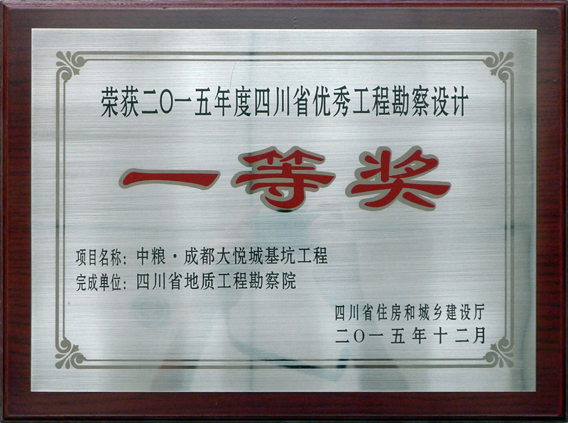 國道213、317線都江堰至汶川公路廟子坪岷江特大橋詳細勘察階段工程地質勘察項目獲得全國優秀工程勘察設計行業獎二等獎,成都水文隊生產科研用房和經濟適用房(5幢綜合樓)水源熱泵中央空調工程水文地質勘察、中糧·成都大悅城基坑工程獲得省工程勘察設計“四優”一等獎,歐尚購物中心工程勘察、松潘縣川主寺鎮第二自來水廠水源地綜合水文地質勘察報告(山巴——川盤橋段)獲得省工程勘察設計“四優”二等獎,潤慶·山予城一期巖土工程勘察報告獲省工程勘察設計“四優”三等獎。