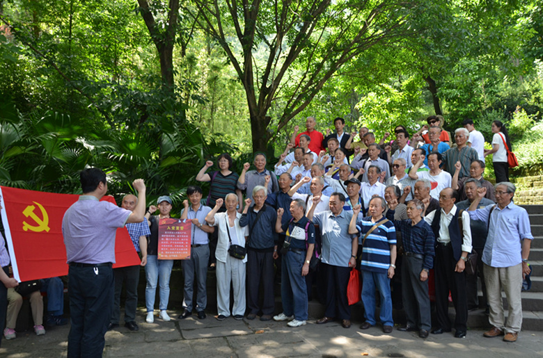在白公館,離退休黨員面對鮮紅的黨旗,高舉右手,莊嚴地重溫入黨誓詞,字句鏗鏘,表達了全體黨員堅定共產(chǎn)主義理想,雖然離開了工作崗位,仍然支持單位發(fā)展,擁護國家改革發(fā)展,堅定黨的發(fā)展信念。