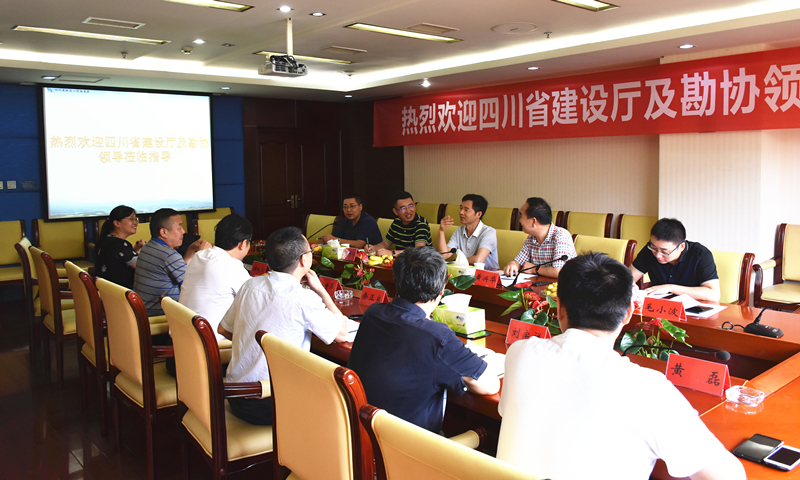 7月26日下午,由四川省住房和建設(shè)廳(以下簡稱省建設(shè)廳)原副廳長、省勘察設(shè)計協(xié)會常務(wù)副理事長楊光、勘查設(shè)計與科學(xué)技術(shù)處處長黃興華等組成的省建設(shè)廳調(diào)研小組到我院走訪調(diào)研并開展座談交流。院黨委書記謝大軍、院長安世澤、副院長余正良、院副總工程師劉宗祥等陪同調(diào)研。